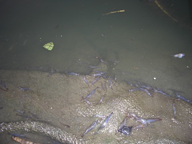 PHショックや大雨による急激な水温低下や酸欠などなど。